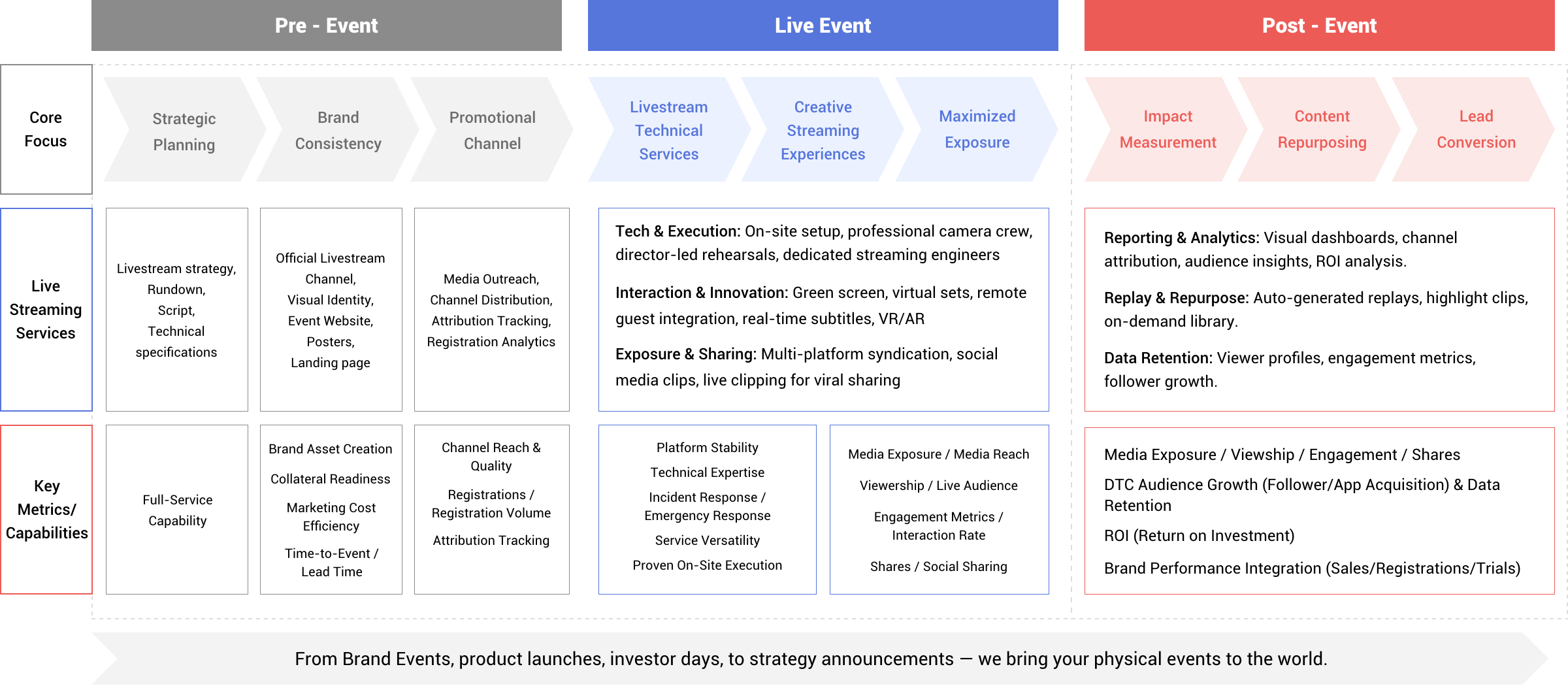 streaming plan that aligns with your on-site event goals — maximizing both physical and digital impact.