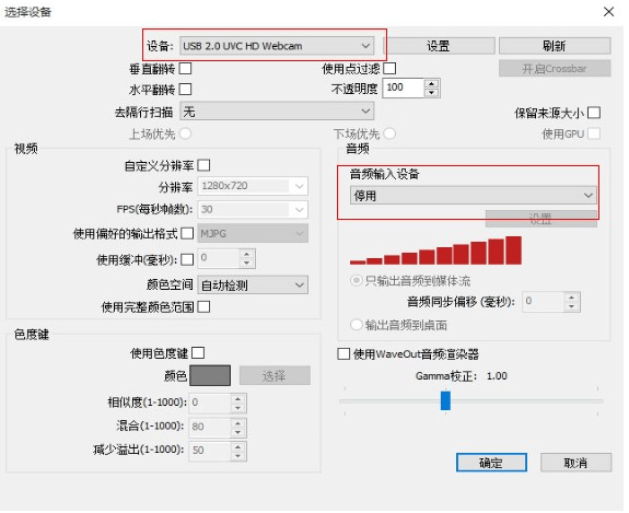 选择您需要的视频设备和音频设备